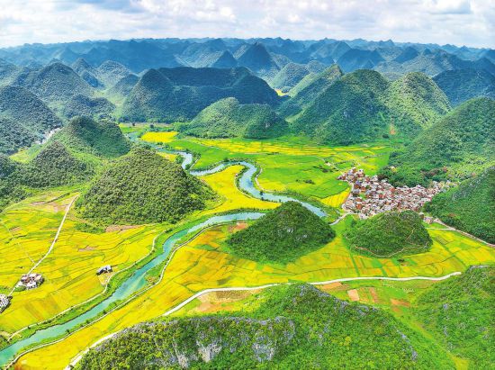 广南县八宝镇丰收的田野。 本报通讯员 王如阳 摄