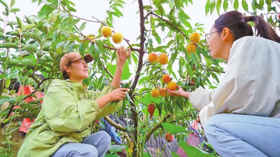 “今年黄桃品质特别好,脆度够、糖分足?!痹谑┑橄靥秸蛞巫由酱宓幕铺以袄?,种植户李堂将黄桃整齐装入筐中。作为当地黄桃种植的带头人,他种植了10亩黄桃树,目前6亩已投产,每亩产量约3000斤。