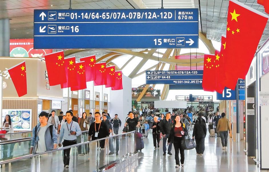 昆明长水国际机场返程客流秩序井然。记者 杨峥 摄