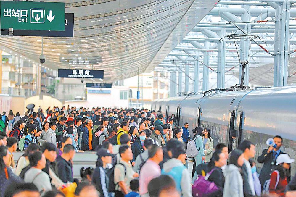 10月8日,国庆中秋假期进入尾声,云南省各地迎来返程客流高峰,铁路、公路和航空等部门多措并举,确保旅客安全顺畅返程。