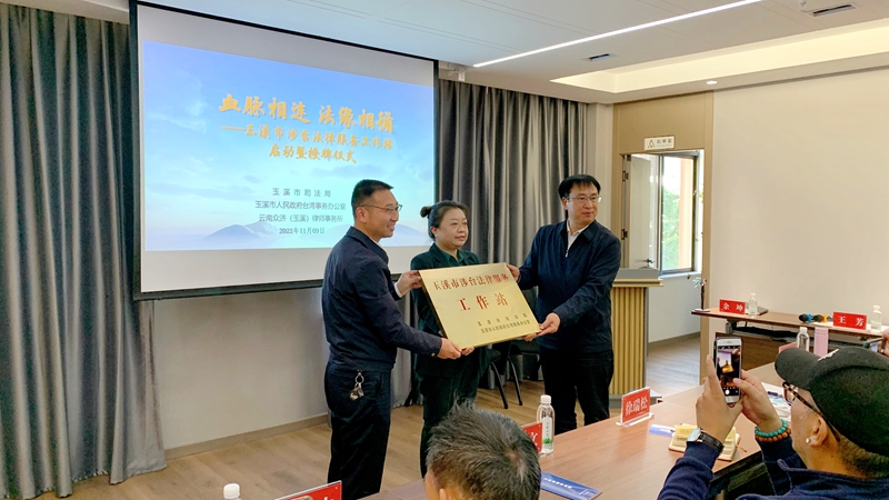 11月9日,为提高台胞台商台属法治意识,解决台胞台商台属权益?;ぁ白詈笠还铩蔽侍?,玉溪市委台办、市司法局、民革玉溪市委在云南众济(玉溪)律师事务所联合开展“血脉相连 法缘相循”玉溪市涉台法律服务工作站启动暨授牌仪式,玉溪市国立公证处及在玉台胞台商台属30余人参加。中共玉溪市委统战部副部长、台办主任柳卫国,玉溪市司法局党组成员、副局长余坤,民革玉溪市委专职副主委陶彦辉出席活动。