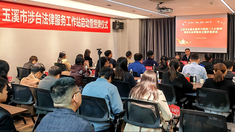 余坤表示,涉台法律工作服务站成立,标志着玉溪市对台工作依法行政、依法服务有了新平台,标志着台企、台胞、台属依法维权有了新保障,这是玉溪市台办联合玉溪市司法局落实“我为群众办实事”、打造最优营商环境的重要抓手,也是助推平安玉溪建设的务实行动。将以工作站成立为契机,进一步加强系列惠台政策的贯彻落实,为台胞台企在玉溪落实同等待遇提供有力的法治保障。