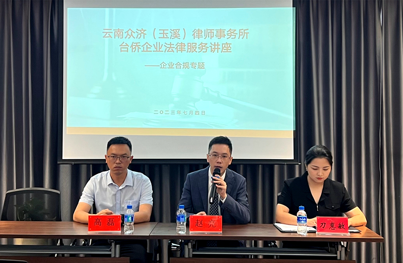 为助力玉溪市台侨企业提高法律风险防范意识,保障企业合规运营及高质量发展,7月4日,玉溪市台侨办联合市司法局在云南(玉溪)众济律师事务所开展第一期“送法律、送政策、送服务、送温暖”专题讲座。