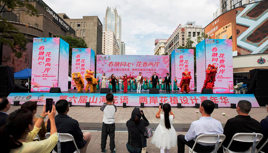 启动仪式上,合唱、舞蹈、武术表演《传承同一梦 起源同一家》,原创歌曲《花海情缘》,朗诵《我和祖国共成长》,歌曲《龙鳞》《中国人》《我和我的祖国》,花仙子走秀等精彩节目轮番上演,现场掌声阵阵。值得一提的是,分别来自昆明和台湾的两位花艺大师现场联合创作花植,以花为媒,在携手创作中彰显两岸同心。