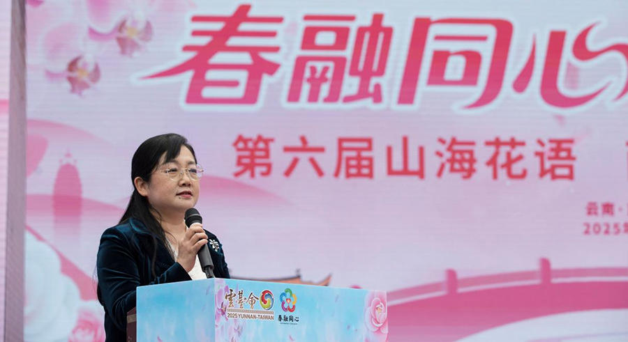 “为进一步助推两岸融合发展,深化文化交流与增强民族认同,自2020年以来,我们以花为媒,连续六年举办‘山?;ㄓ铩ち桨痘ㄖ采杓萍文昊疃?,鲜花也成为了昆台两地友好往来和人文交流的一张名片?!崩ッ魇形ò熘魅瓮跞卦谥麓侵斜硎荆敖衲昶呦?,我们举办第六届‘山?;ㄓ?两岸花植设计嘉年华’暨昆台青年交流活动,不仅是对花卉之美的颂扬,更是对两岸和平发展、民族团结的美好祝愿。”她欢迎更多的台胞台商台青来到花香满城的昆明,观光旅游、生活学习、投资兴业,共同追梦筑梦圆梦。