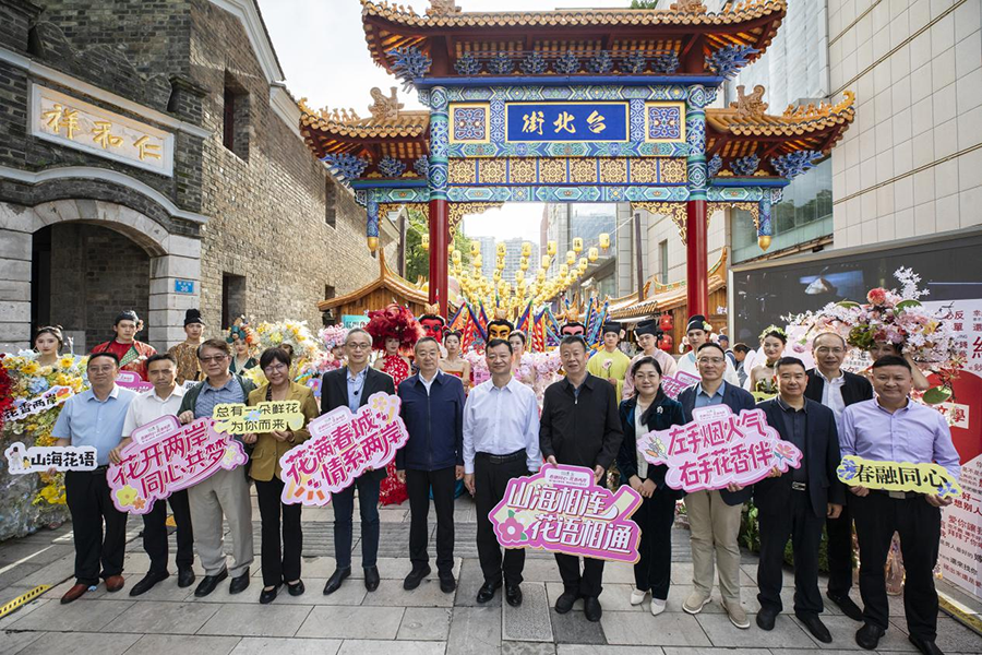 八月春城,花香四溢,争奇斗艳。昆明台北街,烟火弥漫,温暖人心。8月27日下午,“春融同心 花香两岸”第六届“山?;ㄓ?两岸花植设计嘉年华”暨昆台青年交流活动在昆明市五华区南屏步行街广场盛大启幕。省市相关领导、市级相关部门负责人、各县(市)区台办负责人、台湾社区及青年交流团成员、花卉行业人士、台北街商家代表等150余人参加开幕式。云南省委台办主任邓恒源宣布活动启动。
