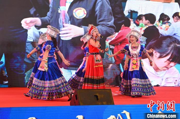 9月10日,台湾地区云南同乡会新生代寻亲之旅交流团表演舞蹈《达鲁玛克》。当日,第6届“七彩云南·相约台湾”主题日暨2024年云台中秋茶话会活动在云南省昆明市举行。中新社记者 李嘉娴 摄