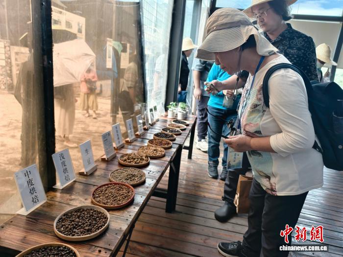 台胞在保山的咖啡生产企业品尝咖啡。中新网记者 韩帅南 摄