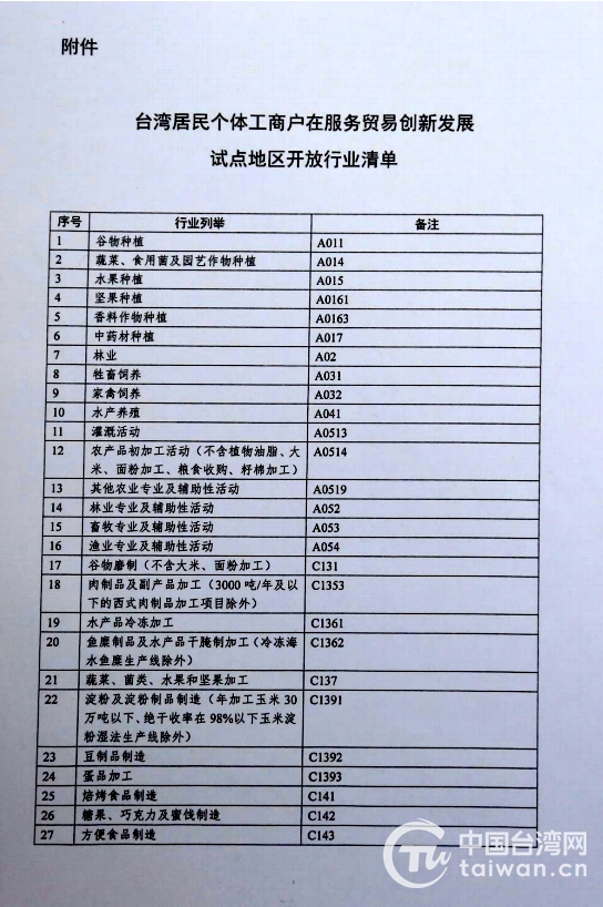 附件:台湾居民个体工商户在服务贸易创新发展试点地区开放行业清单