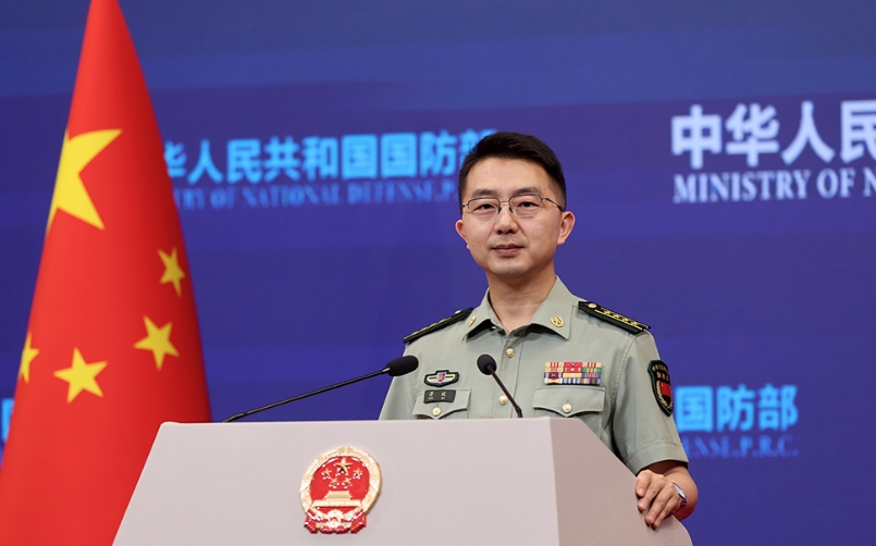 国防部新闻发言人蒋斌大校就近期涉军问题发布消息。(图片来源:国防部网)