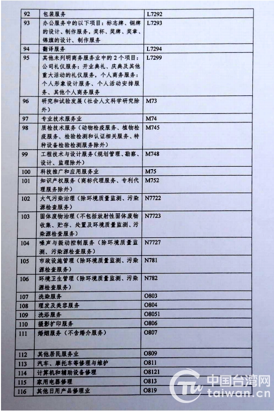 附件:台湾居民个体工商户在服务贸易创新发展试点地区开放行业清单